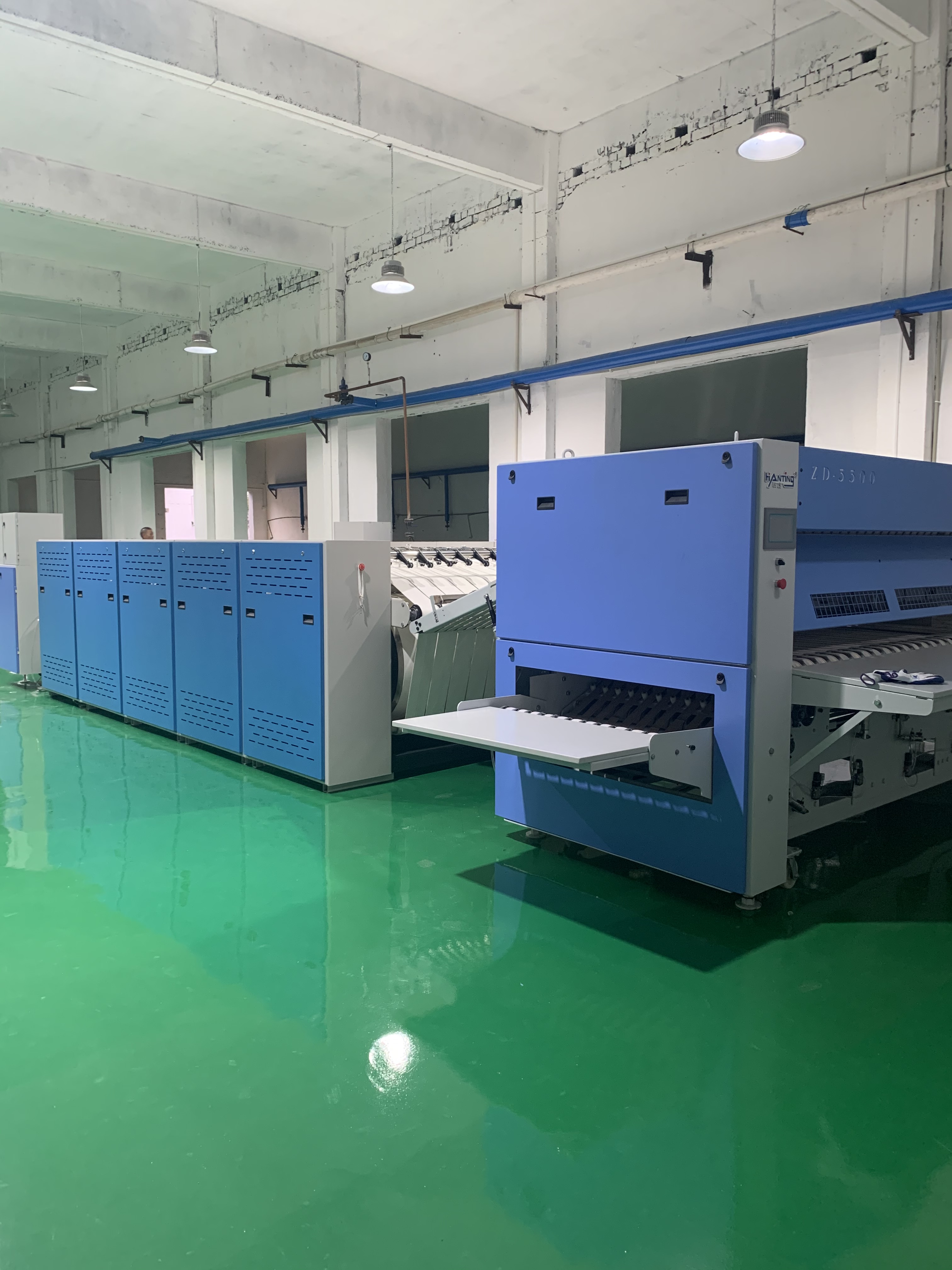 熨燙速度可根據(jù)織物厚度與蒸汽供應(yīng)狀態(tài)任意調(diào)節(jié)(無極調(diào)速),有單個、兩個或三個滾筒機(jī)型,雙滾筒個三滾筒熨平機(jī)可實(shí)現(xiàn)高速熨平。