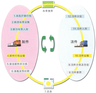 污染區(qū):污染布草的消毒、分類、洗滌、獨(dú)立的空間,單獨(dú)的操作人員、單獨(dú)的洗滌用具、嚴(yán)格地控制了污染的傳播。
